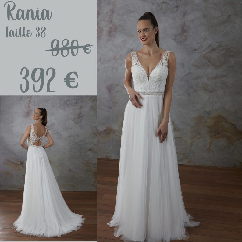 Robe de mariée en tulle et dentelle.