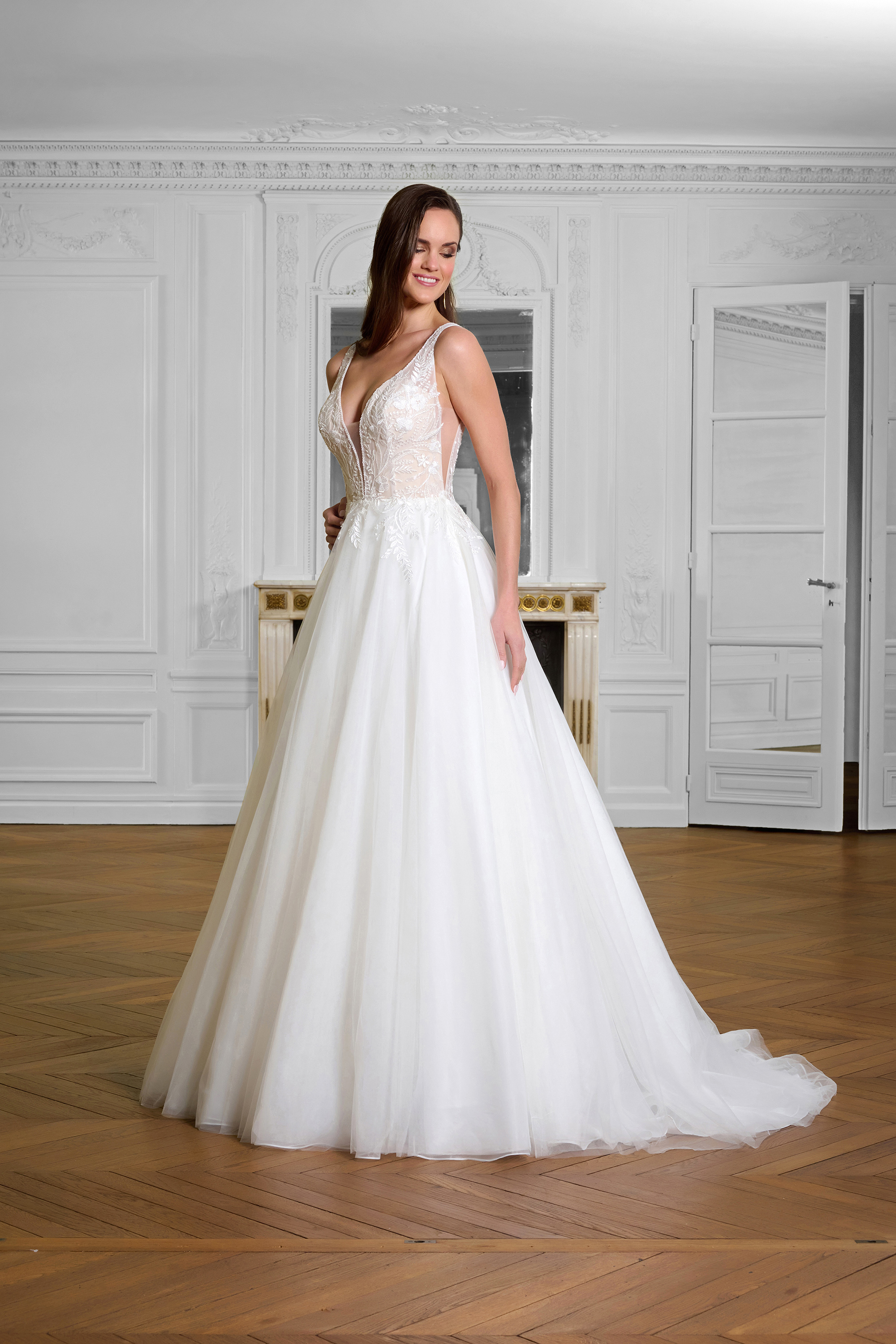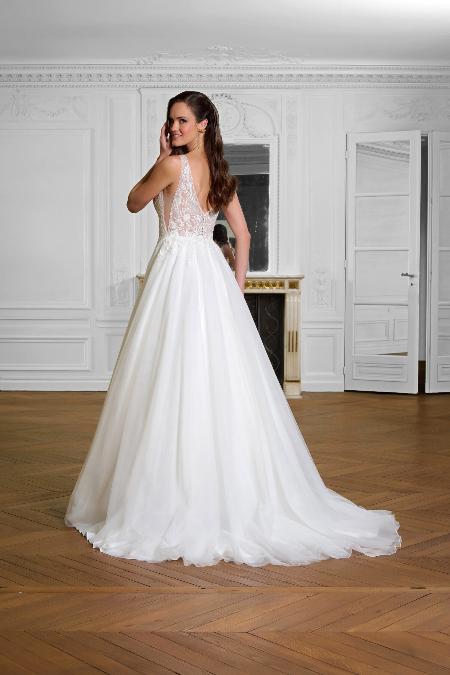 La robe Manille est une création nuptiale raffinée, féminine et aérienne, pensée pour une mariée qui souhaite une tenue élégante et spectaculaire pour son grand jour.