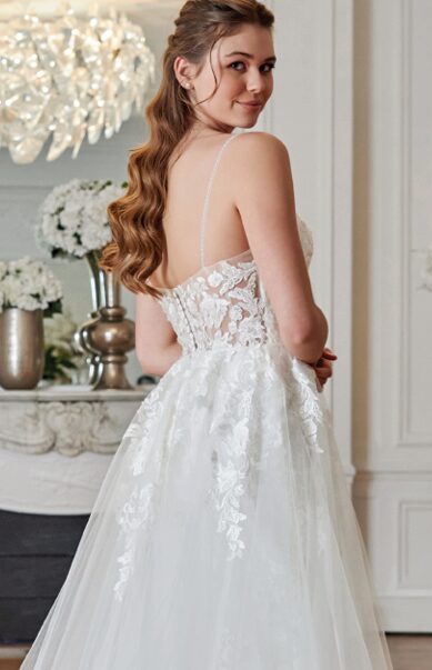 La robe Écrin de Couture Nuptiale évoque une création nuptiale sophistiquée, raffinée et lumineuse, pensée pour sublimer la mariée tout en restant élégante et intemporelle — fidèle aux valeurs de la marque française.